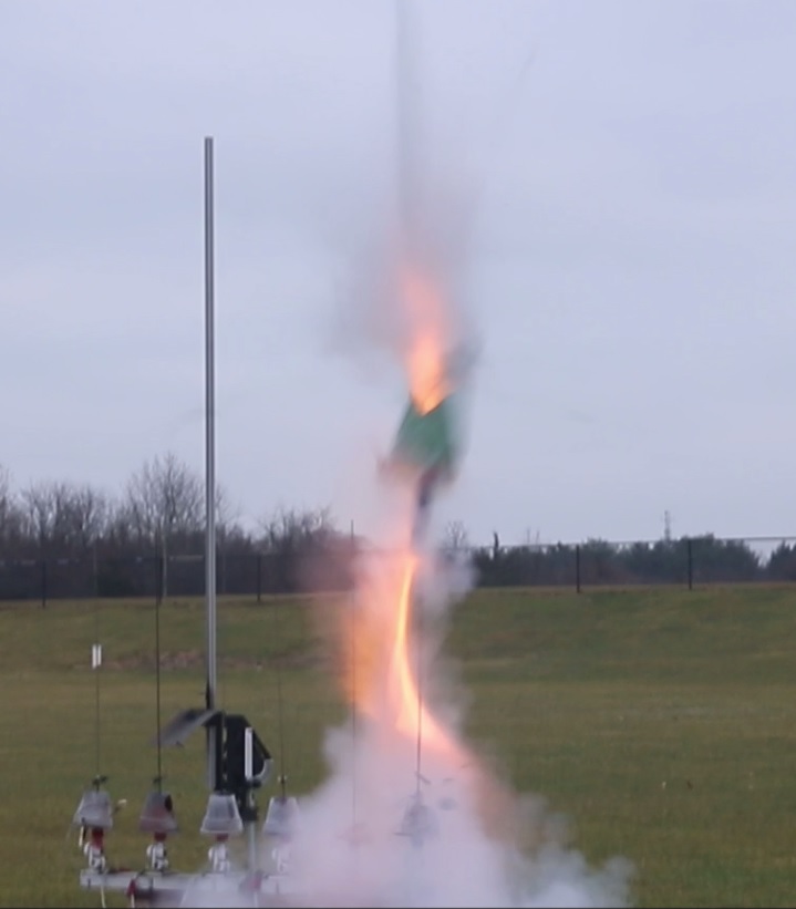 This was a rather explosive (as opposed to a fireball traveling up the casing) event that blew apart the rocket. Happened at the top of the rod. Casing was fine. Nozzle intact. Had 2 of these events on this day.