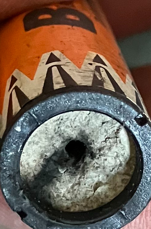 Rocket gained a few inches off the deflector, but proceeded to spin in place. Launch rod was unobstructed and the rocket could slide smoothly. No appreciable thrust. Nozzle may be slightly deformed due to exhaust showing on nozzle, as shown in picture.