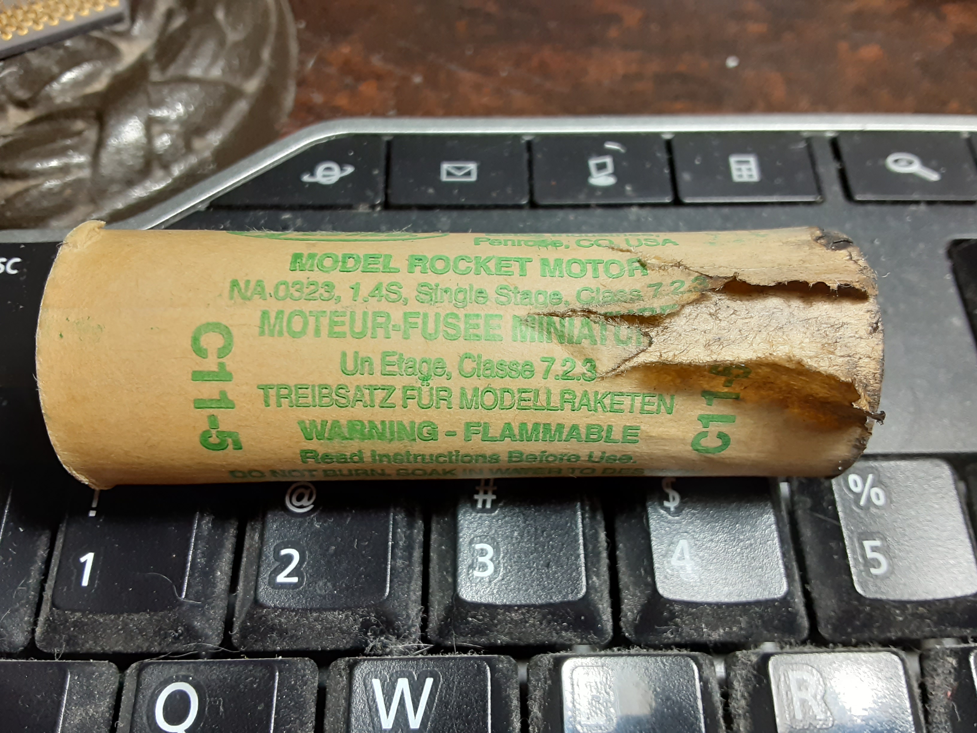 Burning propellant ejected