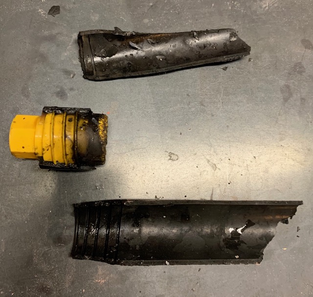 G72DM. Apparent over pressure, shattering the plastic DMS case. Not long after ignition, sparky grains ejected while still burning, which was spectacular. Snow on the ground for this launch (not by accident), no worries!