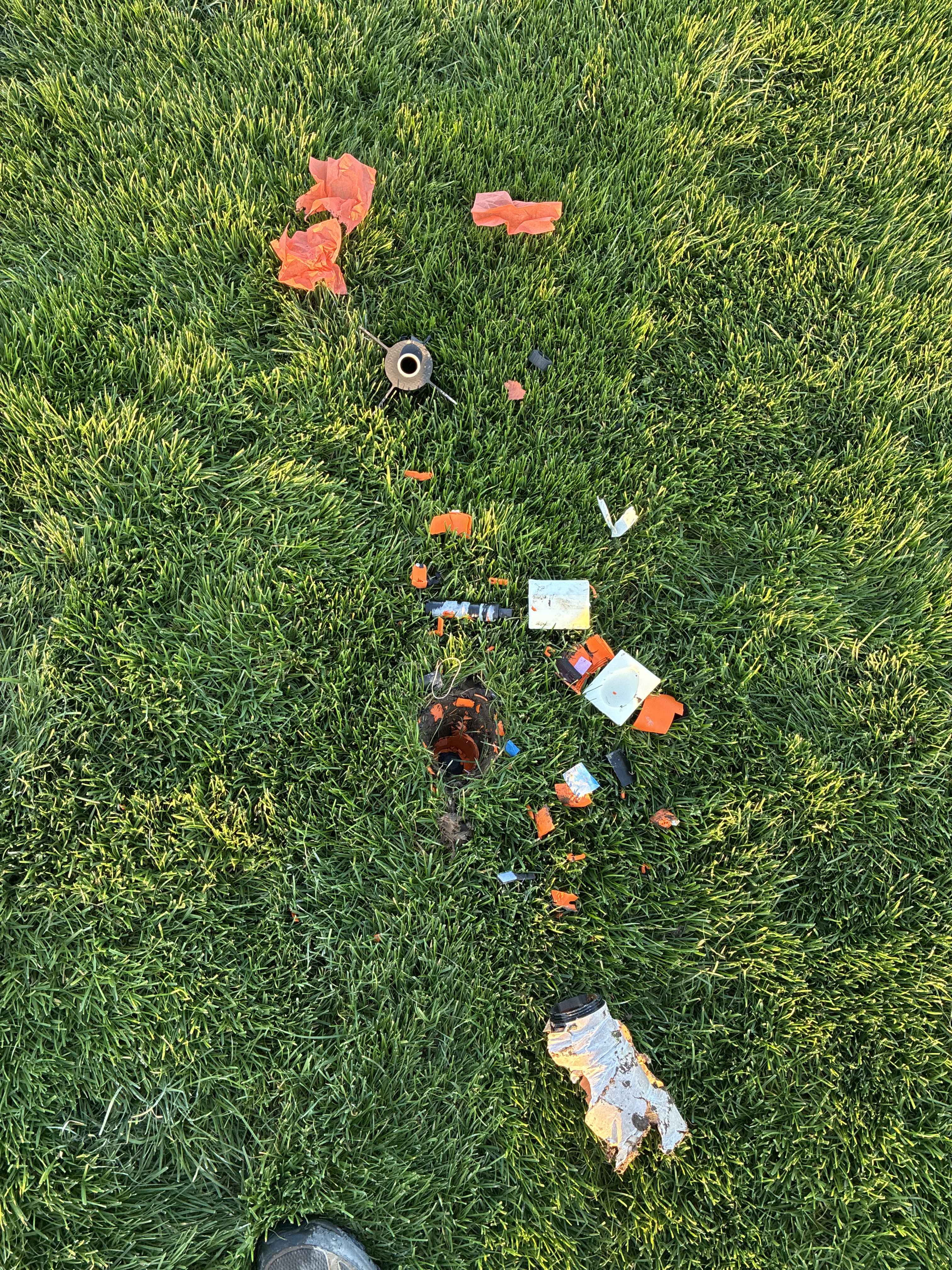Motor ejection charge failed to deploy, and the rocket lawn darted.