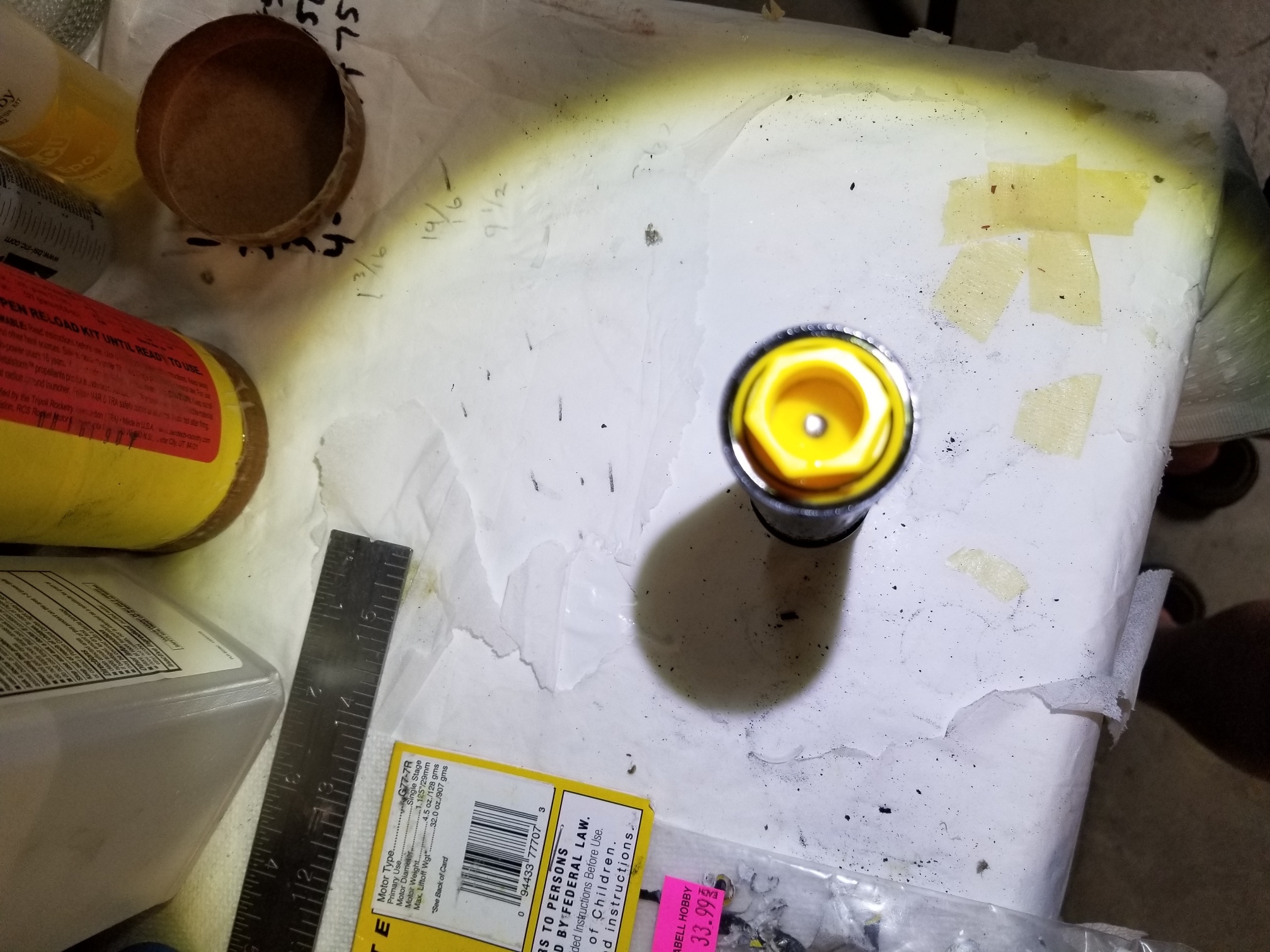 Ejection charge failed. Inspection of the casing showed epoxy in the touch hole above the delay element thus no fire to the BP.