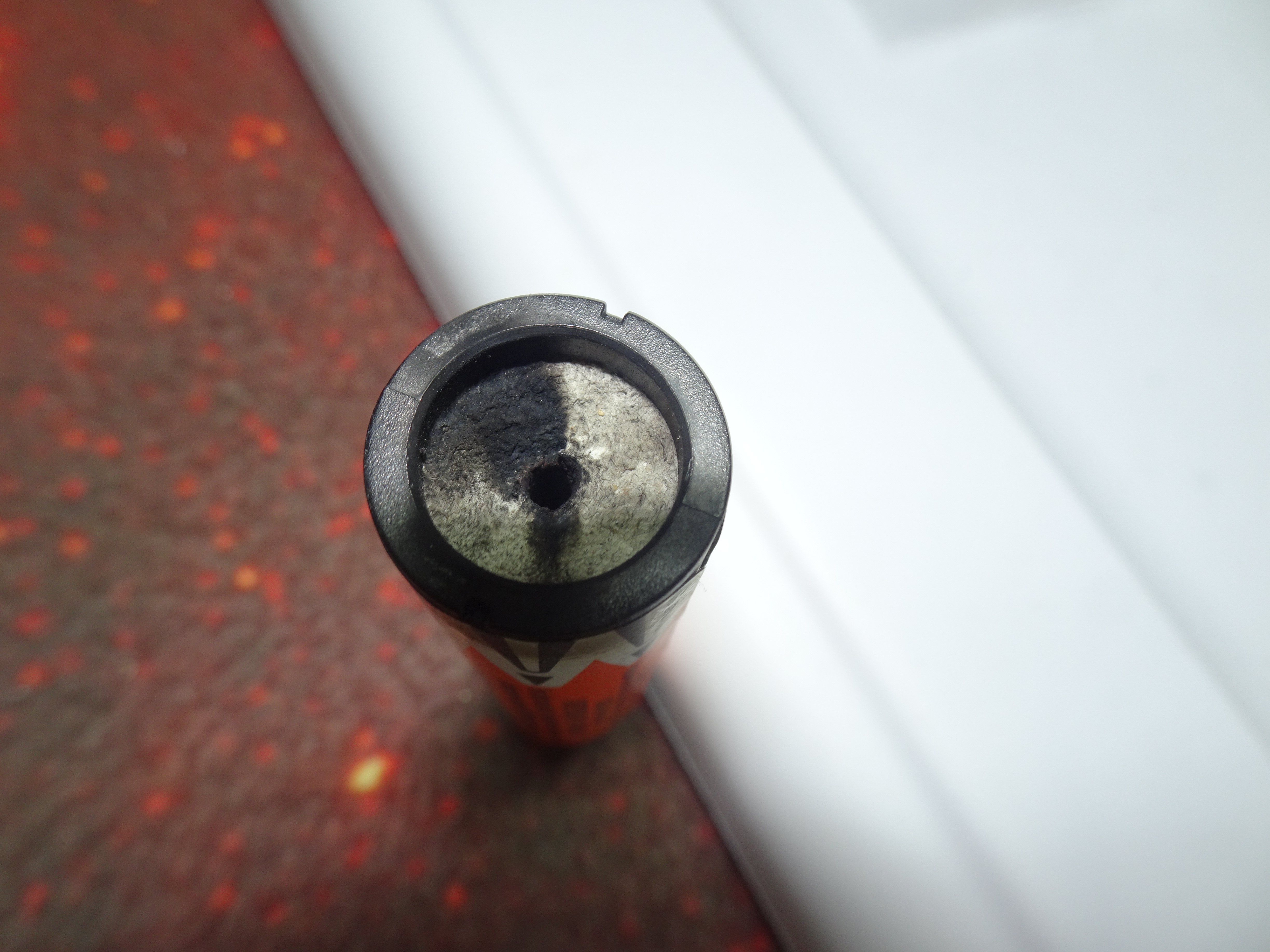 Rocket flew to apogee, no ejection charge was evident. Rocket lawndarted, front half totally destroyed, repairability is doubtful. There is abnormal nozzle appearance, picture enclosed. Motor still has the plastic cap in place for the ejection charge.