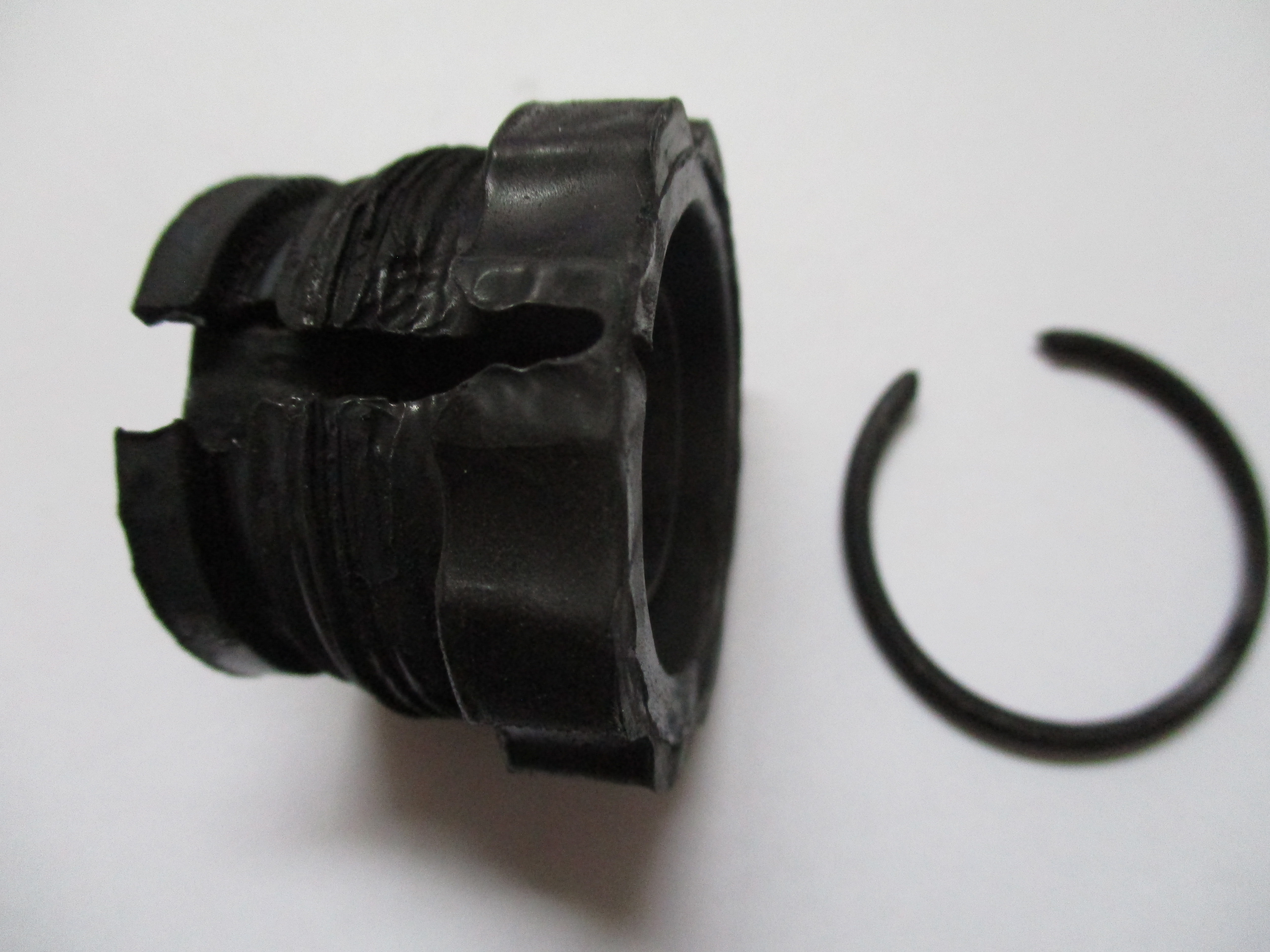 The rocket was about thirty feet in the air when the casing and grains flew into the chute protector and pushed off the nose cone and pushed out the full recovery harness. Then the grains left the liner and casing and burned in the air.