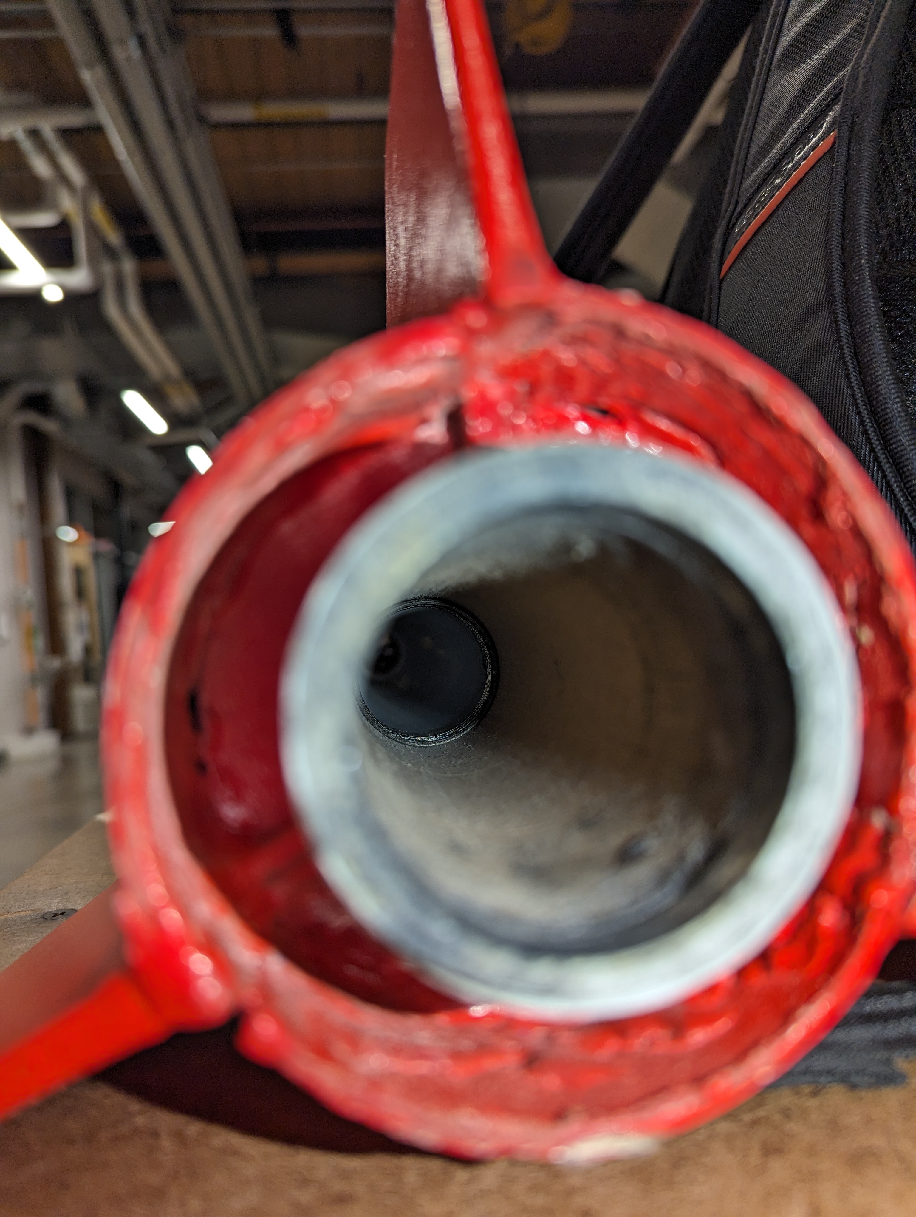 Rocket had 3D printed retainer that was destroyed. Liner and aft bulkhead ejected during flight (Unknown if ejected from drogue apogee charge or from motor failure), both never found. Casing was found ~6-8 inches into motor mount tube, showing soot and debris on the threads and inside the casing. Soot was also found just inside the motor mount tube and on the 3D printed retainer.
