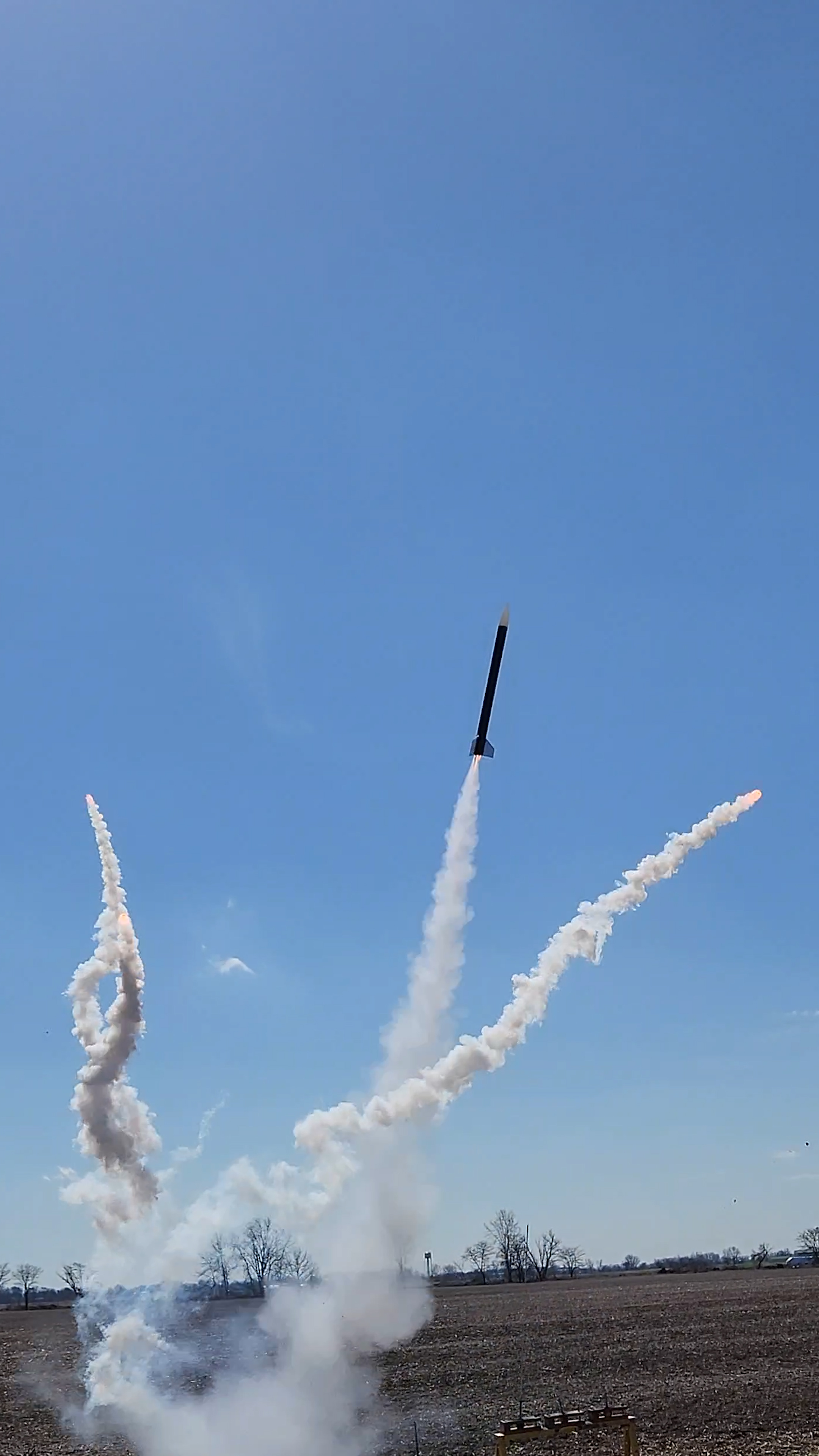 Nozzle blew out at ignition. One of a three motor cluster.