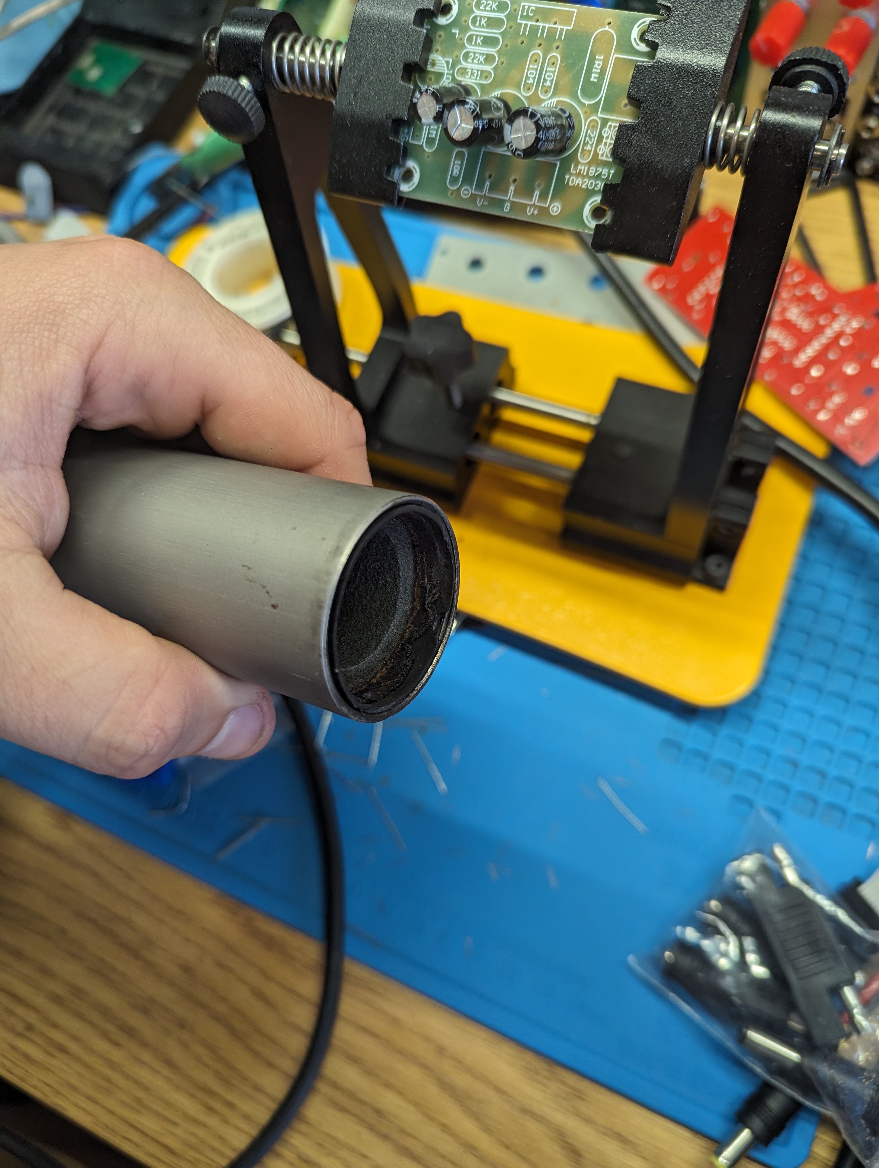 Very near the end of the burn, the aft closure completely blew out. Some unburned propellant remains in the aft grain, all other grains fully burned. No evidence of burn-through on the casing and the threads are still in good condition. There was a small ~1mm chip of damage on the end of the casing (somewhat visible in photo), but it looks more like a tear than burn through, and there was no corresponding damage to the casing.