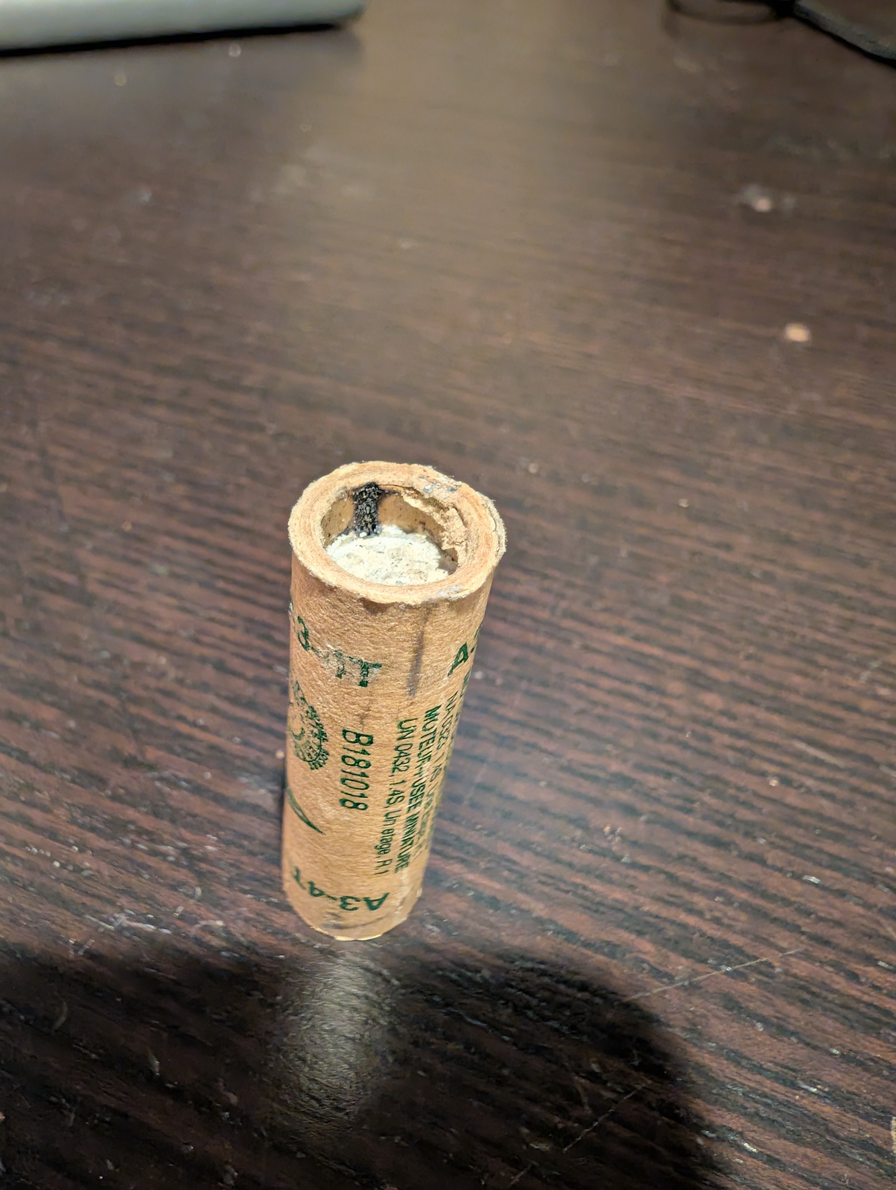 Partial Ejection Charge - nose cone came off, clay cap was completely retained with a tiny black trace on the side wall.