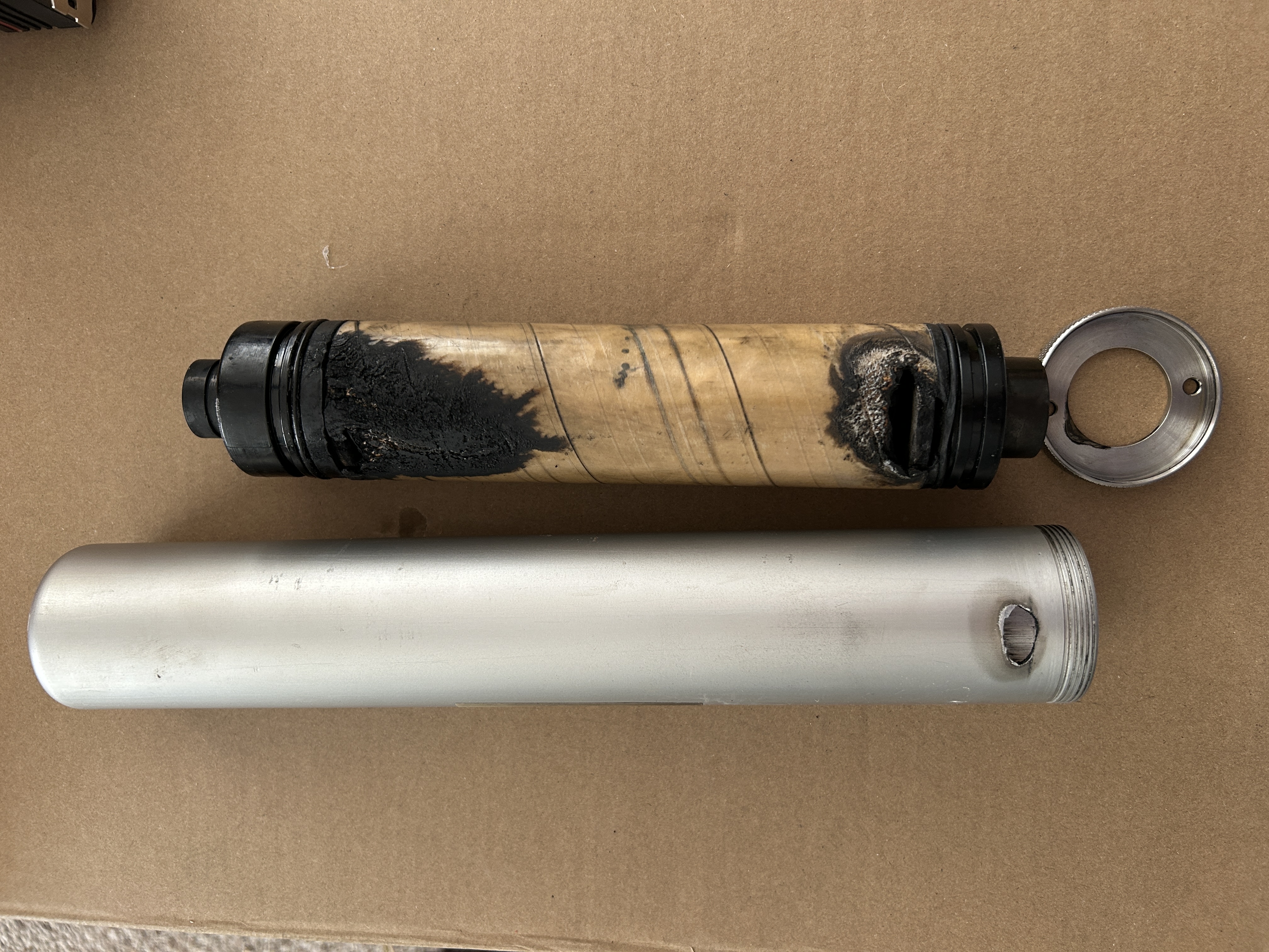 Aft closure also burned through by nozzle Liner also burned through at forward end