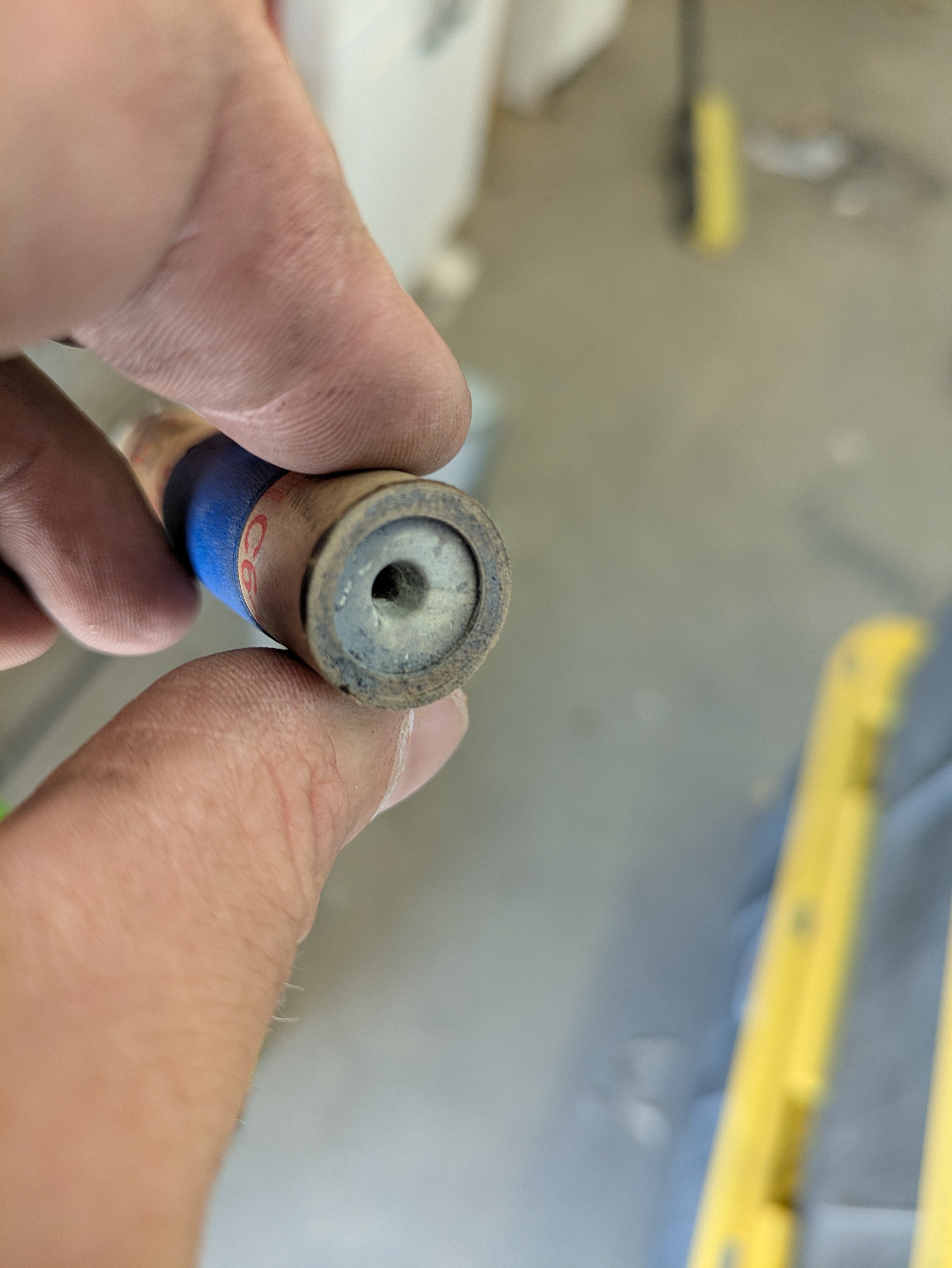 2 OF 2 WITH SAME FAILURE. ENGINE BURNED OUT THROUGH TOP SETTING FIRE TO ROCKET IN FLIGHT. (CLUSTER ROCKET). FAILURE WAS SO COMPLETE THAT IT DIDN'T EVEN SPIT OUT THE IGNITER AND PLUG.